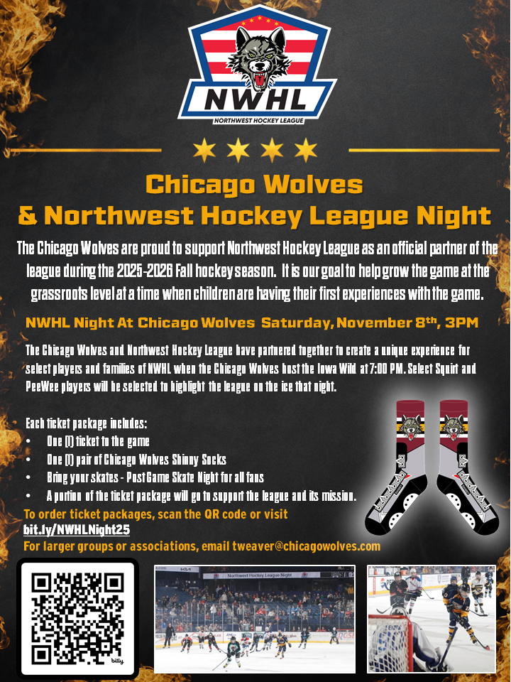 The Chicago Wolves remain committed to helping grow the sport of hockey in Chicagoland and with that in mind, the team has partnered with the Northwest Hockey League to create a unique experience for the players and families of the NWHL while also helping raise funds for the league!